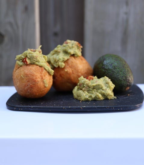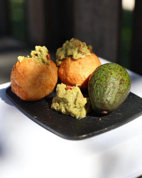 1. Slice the avocados in half, remove the pit, and scoop into a mixing bowl.